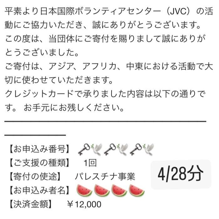 2/19 ¥5500をUNRWAに寄付(「抵抗と灯火」ライブ会場でのチャリティ企画分)