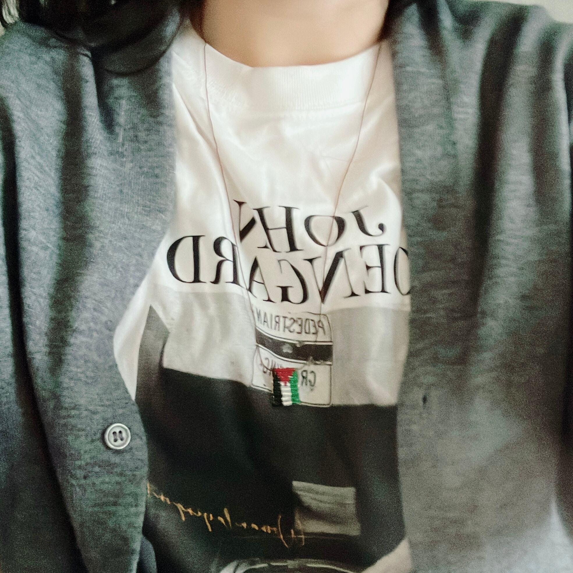 パレスチナ国旗の柄のビーズチャームがトップについたネックレスです。